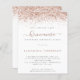 Parties scintillant d'or rose Quinceañera Invitation. Un prix économique PETIT 4,5 po x 5,6 po alternatif. Disponible dans un STOCK CARTE SEMI GLOSS 110 lb qui est l'option par défaut (recommandé pour les invitations), OU un STOCK PAPIER THINNER SATIN FINISH 80 lb (idéal pour les boîtiers). Les enveloppes sont en option et légèrement plus grandes que la taille de la carte. Une bordure de parties scintillant rose en or de chaque côté, et Quinceañera est dans un script de style manuscrit. Personnalisez facilement le texte à vos propres détails. Vous pouvez également modifier le texte et les couleurs arrière - plans via l'option customiser plus si vous le souhaitez.