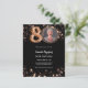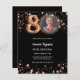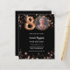 Une invitation photo moderne et design pour une fête du 80e anniversaire. Un arrière - plan noir classique, décoré d'étoiles dorées roses. Personnalisez et ajoutez les détails de votre fête. 1 feuille = 1 invite imprimé bord à bord.