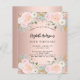 Une invitation moderne, élégante et glamour pour une fête d'anniversaire de 50ème (ou tout âge). Un arrière - plan d'or rose aux fleurs roses rousses, rose. Le nom est écrit avec un script de style moderne écrit à la main. Personnalisez et ajoutez les détails de votre fête. 1 feuille = 1 invite imprimé bord à bord.