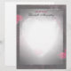 Le beau papier d'écriture a un design de coeur chatoyant au milieu et élégant bordures noires avec des roses rouges ajoutant des éclats de couleur.