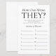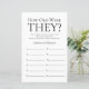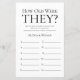 Cette belle feuille de douche nuptiale How Old Are They? est simple et charmant - parfait pour toute douche célébrant 2 mariées. Ce jeu amusant et facile est sûr d'apporter beaucoup de rire à toute douche nuptiale! Demandez à votre famille et à vos amis de vous envoyer des photos des épouses à différents âges et de les faire imprimer. Numérisez-les et mettez-les près de ces feuilles de jeu. Donnez simplement un drap à chaque invité (n'oubliez pas les stylos) et laissez la compétition commencer ! Vous serez surpris de voir combien de personnes connaissent vraiment l'âge des épouses. En quelques secondes, vous pouvez voir comment votre feuille de jeu va apparaître. Sélectionnez Personnalisez ce Modèle et tapez les noms des épouses.