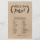 Ce jeu rustique chic "How well you know the bride" est parfait pour une douche de mariée branchée. Le devant de la carte de jeu comporte "comment connaissez-vous bien la mariée", et le dos de la carte contient "ce qui est dans votre sac à main". Le design se caractérise par une typographie amusante en lettrage manuel avec de délicieuses boucles et des tourbillons entourés d'une simple couronne de branche d'olivier. Personnalisez l'avant de la carte avec le nom de l'épouse et la date de la douche de l'épouse. Veuillez noter que ceci n'est pas imprimé sur du papier kraft réel. C'est un graphisme de haute qualité fait pour ressembler à du papier kraft.