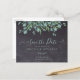 Réservez la date! Annoncez votre mariage à vos amis et à votre famille avec ces écharpes rustiques à budget et eucalyptus enregistrer les cartes de date. Ces cartes de faire-part de mariage budgétaires ont une option d'enveloppe. Personnalisez avec les noms, la date du mariage, l'emplacement. Ajoutez toute autre information au verso. Ce mariage unique en matière de verdure sauve les cartes et fera une impression durable, vos invités s'assureront de sauver la date! DROIT D'AUTEUR © 2020 Judy Burrows, Black Dog Art - Tous droits réservés. Rustique Eucalyptus Budget Mariage Enregistrer La Date