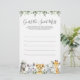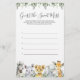 Baby shower à thème pour animaux Safari devinez la carte de jeu à gâchis sucré avec une aquarelle animaux safari illustration et aquarelle verte guirlande à eucalyptus et élégante police manuscrite.