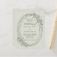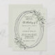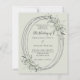 Un arrière - plan vert sage. Un cadre en faux argent ovale décoré de vert sage. Personnalisez et ajoutez vos noms, détails. Texte noir. 1 feuille = 1 invite imprimé bord à bord.