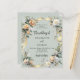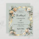 Un arrière - plan vert sage. Décoré de fleurs blanches et jaunes et d'un ruban doré. Personnalisez et ajoutez vos noms et détails. 1 feuille = 1 invite imprimé bord à bord.