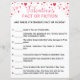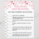 ⭐️ Qu'est-ce que c'est : Saint-Valentin Fact Or Fiction Game est un jeu de fête. Connais-tu la Saint-Valentin ? Combien de questions pouvez-vous répondre correctement ? Si vous ne connaissez pas la réponse, ça va. Le livre de réponses vous dira le fait. Valentine's Day Fact or Fiction Jeu clé de réponse : 1. Fiction (Vénus) 2. Fait 3. Fait 4. Fiction (Finlande) 5. Fait 6. Fait 7. Fiction (Californie) 8. Fait 9. Fiction(1415) 10. Fait 11. Fiction (Eros) 12. Fait 13. Fiction (Oxytocine) 14. Fait 15. Fait 16. Fiction (cuillère)
