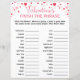 ⭐️ Qu'est-ce que c'est : Saint Valentin Finish The Phrase Game est un jeu de fête. Dans un groupe, un point est donné lorsque la réponse est la moins importante. La plupart des points gagne !