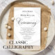 Un simple programme de cérémonie Mariage feuille de papier modèle. avec élégant, minimaliste, simple, noir et blanc, avec un script de calligraphie classique, et bienvenue typographie.