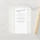 Ce script élégant et ces fiches d'information des invités en bois rustique sont faciles à customiser en tant qu'enclos avec vos invitations, lettres de bienvenue ou feuilles d'itinéraire mariage pour vos invités. Placé sur un arrière - plan en faux bois gris argenté, un insert blanc solide fait apparaître votre texte personnalisé. L'élégant en-tête de script manuscrit peut être customisé avec votre texte personnalisé sur l'avant et l'arrière si vous avez besoin de plus de place. Tenez vos invités informés de tous les détails grâce à ces fiches d'information modernes et rustiques des mariages.