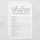 Épicez votre douche nuptiale moderne en noir et blanc avec l'élégant Script Who Knoth The Bride Best Game! Ce jeu de douche nuptiale sophistiqué dispose d'une police de script minimaliste pour un look propre et intemporel. Rire et se lier sur vos souvenirs préférés de mariée en essayant de prouver que vous la connaissez le mieux. Avec des questions réfléchies qui déclenchent la conversation, ce jeu est une célébration sincère. Parfait pour une douche nuptiale classe et intime avec des amis proches, le jeu de script élégant ajoute une touche de distinction. C'est une façon mémorable d'honorer la mariée tout en réunissant vos invités. Faites de votre douche nuptiale une à retenir avec ce jeu unique!
