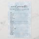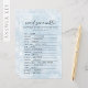 Ajoutez une touche amusante et festive à votre baby shower d'hiver avec le jeu Simple Blue Snowflakes Baby Word Scramble Game. Ce joli jeu est doté d'un design d'aquarelle charmant avec des flocons de neige bleus doux, capturant parfaitement l'ambiance chaleureuse et hivernale d'une célébration "Baby It's Cold Outside". Simple mais divertissant, il met les clients au défi de démêler les mots liés au bébé, en fournissant des heures de plaisir interactif. Idéal pour tous les baby showers, ce jeu de mots scramble est une excellente façon de garder vos invités engagés tout en complétant votre décor sur le thème de l'hiver. Avec son charme enneigé et sa nature ludique, ce jeu est sûr d'être un succès à votre baby shower!