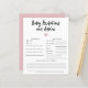 Un baby shower de bébé à coeur rose moderne et mignon prédictions et carte de conseil. Les textes sont modifiables. Un jeu parfait à jouer pendant la douche et sera certainement un grand gardien! La carte demande aux invités de prédire à quoi ressemblerait le bébé. Conçu pour le baby shower d'une fille.