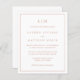 Faire-part de mariage économique simple avec un design moderne et élégant avec votre monogramme à deux lettres en haut et vos détails entourés d'une fine bordure. Tout le texte est en or rose sur un arrière - plan blanc. Les polices et les couleurs arrière - plans peuvent être changées en n'importe quelle couleur en cliquant sur le bouton "personnaliser". Ces invitations de mariage bon marché sont parfaites pour un couple minimaliste.