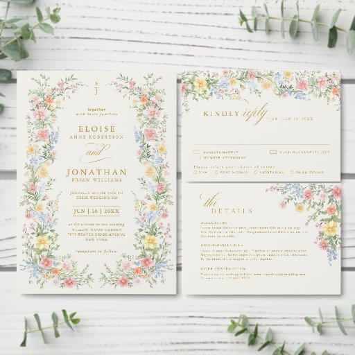 Bring timeless charm and romantic elegance to your wedding with this minimalist floral program with gold lettering, featuring a soft watercolor border of hand-painted blooms. The delicate floral arrangement includes pastel pinks, buttery yellows, soft lavenders, baby blues, and sage greens, gracefully framing your custom text in the center. Perfect for spring or garden weddings, this design blends vintage botanical beauty with a modern minimalist layout. Fully editable using Zazzle’s design tools — customize fonts, wording, and layout to make it uniquely yours. For customization or additional products featuring this design, please feel free to contact me.