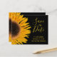 Budget rustique pays élégant mariage tournesol jaune sur noir arrière - plan pays Enregistrer la date annonce cartes plates. Beau design simple d'impression de fleurs. Copyright de l'image Marg Seregelyi Photography.