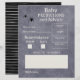 Des feuilles de papier "prédictions et conseils" grises et noires, qui correspondent à la collection du parti "il faut un village hanté pour élever un petit monstre". Inclut la date de naissance, l'heure, le poids, la longueur, la couleur des yeux, la couleur des cheveux, la ressemblance et l'espace pour ajouter un message de conseil pour les nouveaux parents.
