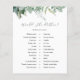 Carte de jeu de douche nuptiale avec cascade d'aquarelle de succulents et d'eucalyptus. Une façon amusante d'interagir avec les clients de douche.