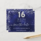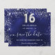 Une fille et tendance Enregistrer la carte Date pour une Sweet 16, 16e anniversaire fête. Un arrière - plan bleu marine inégal. Décoré de parties scintillant en faux argent, pétillant. Le texte : Save the Date est écrit avec un grand script de style à la main tendance. Le numéro 16 est écrit avec une police de style ballon.