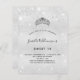 Pour un élégant Sweet 16, 16e anniversaire. Un arrière - plan faux argenté. Décoré de faux étincelles et d'une tiare, couronne. Personnalisez et ajoutez un nom, un âge et des détails de la fête. Le nom est écrit avec un script de style manuscrit