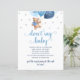 Aquarelle Teddy Bear Blue et Silver Balloons Baby shower Don't Say Baby Game Poster. Le design présente une élégante disposition de texte de style moderne. Pour effectuer des modifications avancées, sélectionnez l'option "Cliquez pour customiser plus loin".