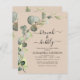 Budget Brunch et Bubbly Eucalyptus Verdure Aquarelle botanique Succulente Emerald Green Spring Wedding Fête des mariées QR Code Invitations sur arrière - plan blanc - comprend belle et élégante typographie script avec feuilles botaniques modernes et verdure pour la fête spéciale Mariée à être.