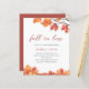 Invitations personnalisables en papier de douche nuptiale moderne, avec une branche d'un arbre en automne et feuilles d'automne dans les tons orange, rouille, jaune et marron sur un arrière - plan blanc propre. C'est une invitation papier abordable. Nous vous invitons à visiter notre magasin Peony Designs pour acheter cette invitation par carte ou numérique.