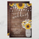 Ce design mariage abordable comprend un vase en bocal de mason rempli de tournesols et de respiration pour bébé sur un arrière - plan en bois rustique avec des lampes à cordes. Cliquez sur le bouton personnaliser pour plus de flexibilité dans la modification du texte. Des variantes de cette conception, différents types de papier, ainsi que des produits de coordination sont disponibles dans notre boutique, zazzle.com/store/doodlelulu. Contactez-nous si vous avez besoin que cette conception s'applique à un produit spécifique pour créer votre propre article de correspondance unique! Merci tellement pour voir un DoodleLulu par 2 june conception de bogues!