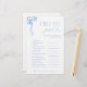 Le Find the Guest est est un brise-glace raffiné conçu pour transformer toute douche nuptiale en un rassemblement animé et branché. Avec une série d'invites, ce jeu encourage les invités à se mêler, partager des histoires et découvrir des faits amusants les uns sur les autres, tout en célébrant la future mariée. L'illustration délicate en ruban bleu et la typographie classique apportent une touche d'élégance sobre, assurant ainsi un mélange harmonieux dans un cadre événementiel sophistiqué. Parfait pour les douches nuptiales, les fiançailles ou même les dîners de répétition, ce jeu est conçu pour créer des conversations mémorables et des connexions significatives. Que vous soyez à la rencontre pour la première fois ou que vous renouiez avec de vieilles amitiés, cette activité vous offre une atmosphère chaleureuse et de camaraderie. Pour des designs assortis, des couleurs alternatives ou des adaptations personnalisées, le concepteur est ravi de collaborer pour améliorer l’esthétique cohésive de votre événement. Copyright Anastasia Surridge, tous droits réservés.