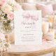 A soft ivory colored background, decorated with a light pink bow. Personalize and add a name and party details.