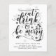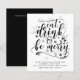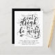Carte de Noël ou de fêtes moderne et attrayante avec une typographie 'Manger, boire et s'amuser'. Champs de texte des deux côtés pour vous permettre d'écrire votre lettre annuelle à vos amis et à votre famille. Les enveloppes ne sont pas incluses.