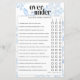 Amusez-vous à votre baby shower d'hiver avec ce petit flocon de neige Over Under Guening Game de Yellow Moon Atelier. Doté d'un design de flocon d'aquarelle bleu doux, ce jeu de devinettes ajoute un élément ludique à votre célébration hivernale. Les clients pourront deviner si certains faits liés au bébé sont passés ou inférieurs au numéro donné, ce qui en fait un moyen amusant d'engager tout le monde sous la douche. Pour d'autres personnalisations, envoyez un courriel à hi.yellowmoonatelier@gmail.com. N'oubliez pas d'explorer le reste de la collection de Baby showers Little Snowflake de Yellow Moon Atelier pour créer un événement magnifiquement coordonné !