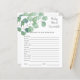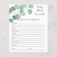 Célébrez la maman à être en style avec notre soirée baby shower eucalyptus. Ce magnifique design présente d'élégantes aquarelles feuilles d'eucalyptus. Commandez les vôtres dès aujourd'hui ! Objets correspondants disponibles ! Réponses : CRAVINGS, PLEIN, PACIFICATEUR, BOUTEILLE, LUMIÈRE NOCTURNE, LULLABY, STROLLER, ÉPIDURAL, BRÛLE, CHAISE HAUTE, SAC DE DIAPER, ÉPONSE