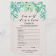 Ce jeu de verdure "comment bien connaître la mariée" est parfait pour une douche de mariée à thème en feuilles ou en bois. Le devant de la carte de jeu comporte "comment connaissez-vous bien la mariée", et le dos de la carte contient "ce qui est dans votre sac à main". Le design est composé d'un beau bouquet vert de feuilles et de branches avec des fleurs d'anémones blanches et d'une police de calligraphie élégante sur un arrière - plan beige crème. Personnalisez l'avant de la carte avec le nom de l'épouse et la date du wedding shower. Conçu avec soin par Miriam à Fresh & Yummy Paperie. Pour la coordination des articles, veuillez visiter mon magasin Zazzle :