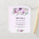 Arrière - plan violet, lavande aquarellé. Décoré de fleurs violettes et violettes aquarelles et verdure. Personnalisez et ajoutez votre nom et les détails de votre fête. 1 feuille = 1 invite imprimé bord à bord.