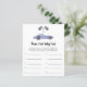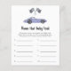 Carte d'invitation baby shower à thème de voiture de course avec des illustrations aquarelles d'une voiture vintage violet (violet) et drapeau noir - blanc. "Course pour un baby shower."