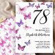 Cette jolie et fantaisiste 78ème anniversaire est parfaite pour une soirée sympa et donnera un ton amusant et festif. Ce design est composé de papillons roses et violets, et est un choix féminin agréable pour un événement spécial pour célébrer un anniversaire marquant. Customisez pour votre propre année d'anniversaire, et cherchez "78" dans mon magasin pour voir la coordination des conceptions.