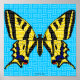 Dessin numérique d'un papillon Papilio glaucus, montrant ses ailes noires et jaunes sur un fond bleu.