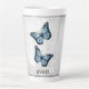 Profitez de votre café du matin ou du soir avec une Bouge en latte personnalisée Florale Papillon Bleu. Le design de la moquette comprend une paire de papillons vibrants reposant sur une vigne florale blanche contre un arrière - plan gris clair. Autres cadeaux disponibles avec ce design ainsi qu'une variété de couleurs.