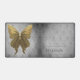 Ajoutez une touche élégante à votre espace de travail avec un Tapis Damas à Papillon Bijoux. Le design de tapis de bureau comprend un papillon vibrant contre un motif vintage damassé vieilli et la personnalisation du nom. Cadeaux supplémentaires disponibles avec ce design.