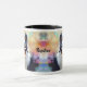 This colourful mug celebrates the adorable and energetic Papillon dog! Two sides of the mug have a beautiful portrait of a Papillon Dog against an abstract background. Predominant colours are blue, pink, gold and more. At the centre is script that says Papillon, but you may change it or even personalize it, if you wish. This mug will get noticed!