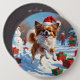 Papillon Dog Running in Snow with Christmas Hat 6 Inch Round Button