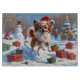 A cheerful Papillon runs through the snowy winter scene, wearing a festive red Christmas hat. With its butterfly-like ears and lively personality, this design captures the playful charm of the breed while celebrating the joy and spirit of the holiday season. A heartwarming and festive winter moment.