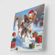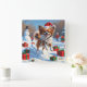 Papillon Dog Running in Snow with Christmas Hat Square Wall Clock