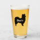 Enjoy a pint of your favourite cold beverage out of this unique 16 oz drinking glass. Papillon silhouette with custom text for your name or slogan. Makes a fun personalized gift. Visit Jenn's Doodle World for more custom drinkware and dog breed gifts.