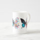 Cette belle tasse en céramique blanche présente un design époustouflant d'un papillon bleu et noir entouré d'un motif floral éclatant dans les tons rouge, jaune et bleu