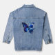 Une élégante veste en denim est ornée d'un papillon bleu généré par l'IA avec un bouquet floral.