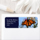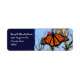 Un beau papillon Monarque orange et noir, des ailes tendues, assis sur des fleurs de chardon violet, la lumière du soleil brillant sur lui, un graphique de bord déchiqueté bleu foncé à gauche. Personnalisez le nom et l'adresse du texte avec vos propres informations.