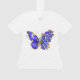 Bijoux, bleu, saphir, papillon aux fleurs pétillantes avec aile décorée de bleu, fleurs précieuses avec feuilles d'or sur arrière - plan blanc.