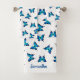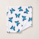 Joli ensemble de serviettes de bain bleu papillon. Cet ensemble comprend trois serviettes blanches toutes décorées d'un mignon motif papillon bleu. Utilisez-les comme accessoires de bain qui seront à la fois pratiques et servent d'accent décoratif. Le style de décoration de la salle de bains est d'inspiration naturelle, bleu et blanc. Fait une merveilleuse idée de cadeau pour un amoureux du papillon.